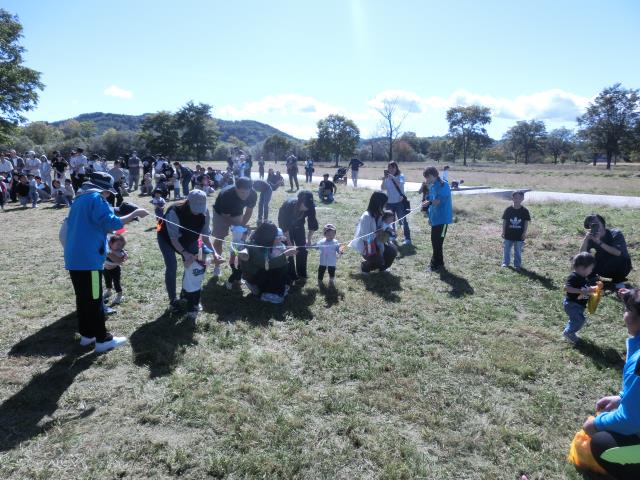 お菓子取りゲームも白熱し、元気いっぱい走っていた子ども達。