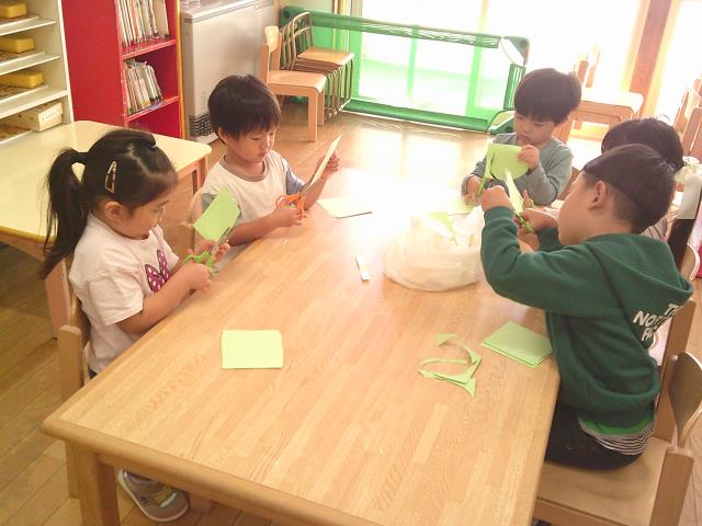 今日のたんぽぽぐみは、ごっこ遊びの製作を行っています。