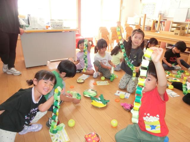初めは上手くとれずに苦戦していた子も、たくさんとっているうちに、皆りんごをとるのが上手になっていましたよ!