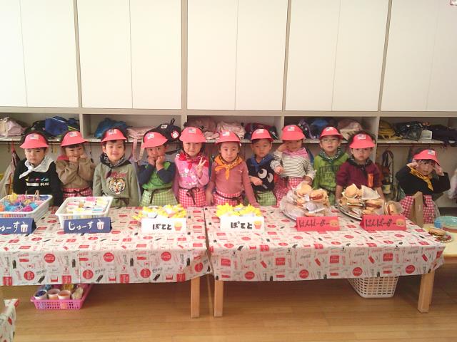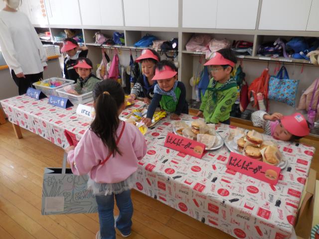 明日はお店屋さんとお客さんが入れ替わって、ごっこ遊びを開催します。お楽しみに♪