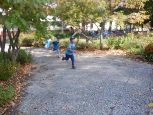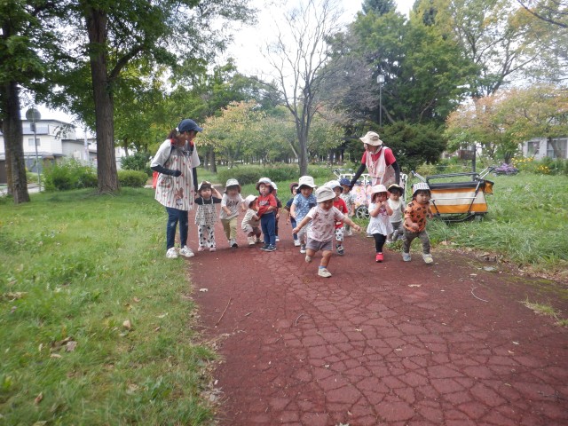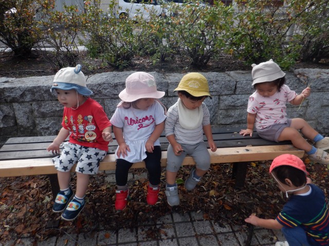 遊具の、車に乗ったり、渡橋につかまり立ちしてみたり