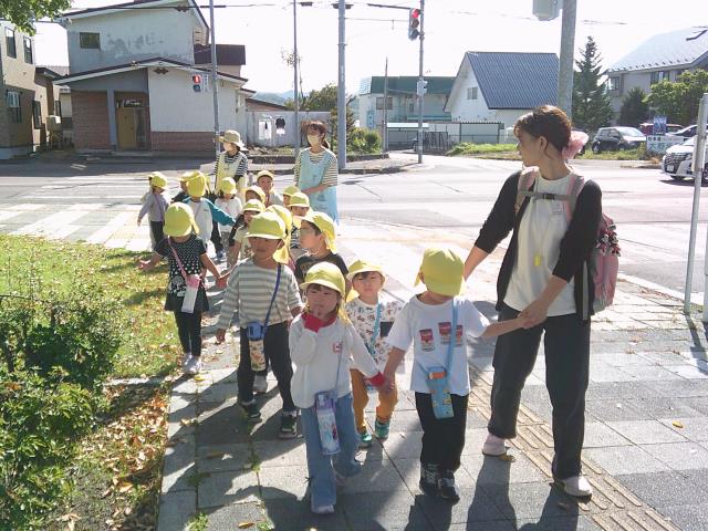 今日のたんぽぽぐみは、園外保育でいつもよりちょっぴり遠い、北見駅方面へ行ってきました。