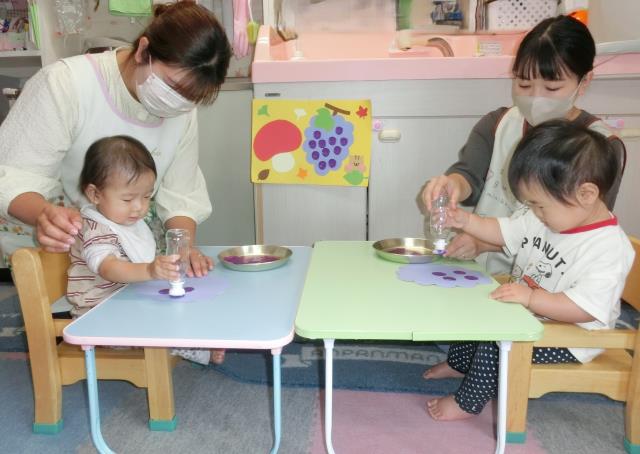 ちゅうりっぷさん、さくらさん、すみれさんのお友だち皆で、仲良く遊んでいた子ども達。