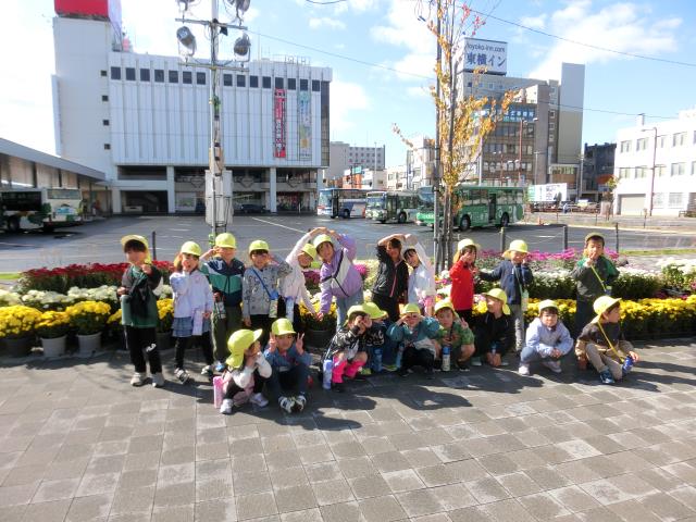 今日のすみれぐみは、芸文前広場~北見駅までお散歩に行き、飾ってあるかぼちゃや菊の花を見てきました。