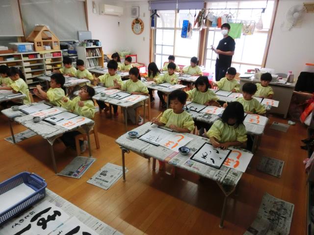今日のすみれぐみは、習字で”かい”という文字を書く練習をしました。