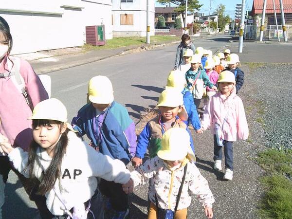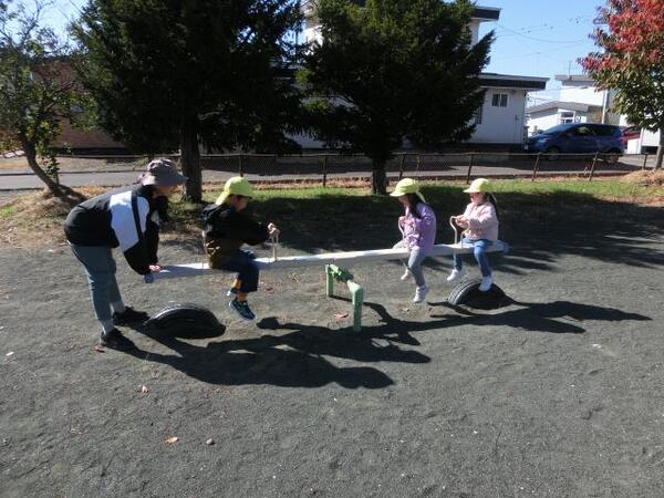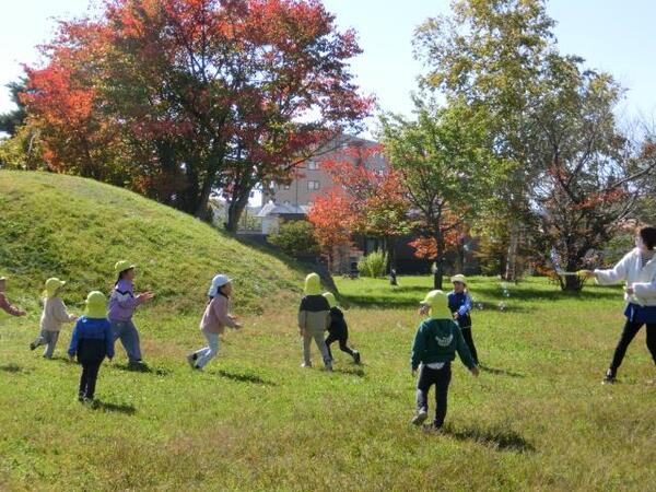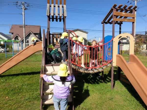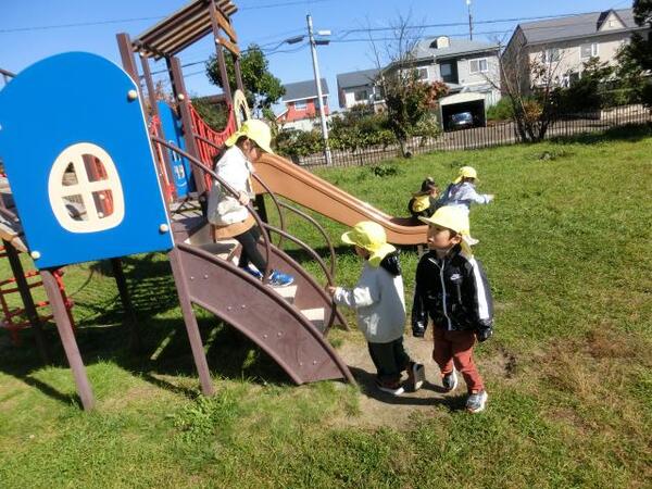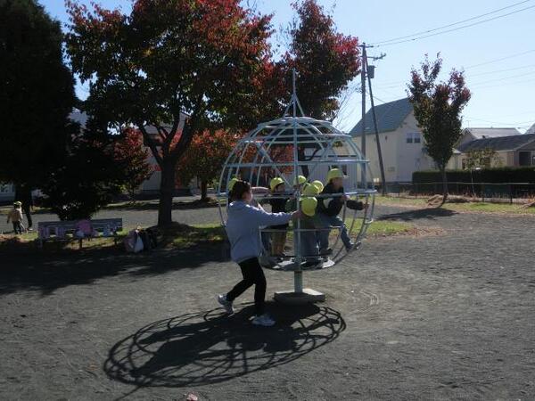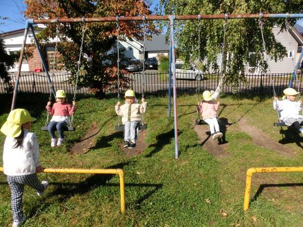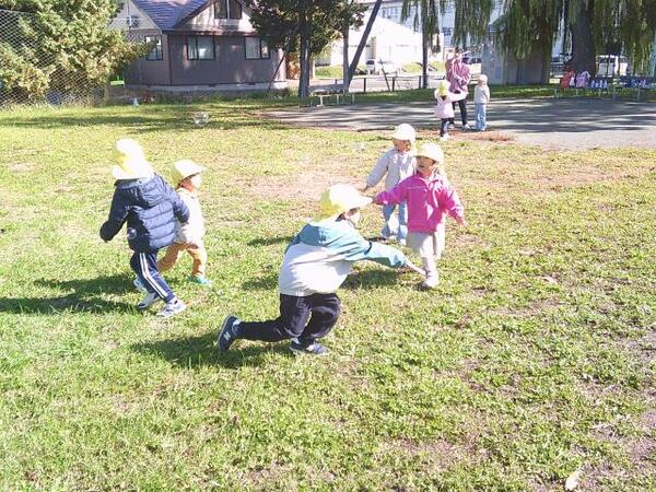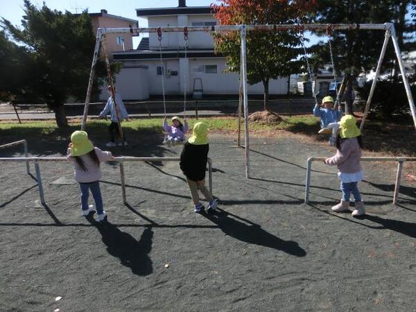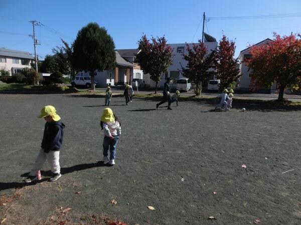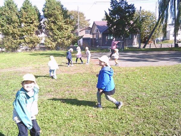 | 10月14日(火) わくわくタイム〜桜町公園グループ〜は、お友だちと手を繋いで元気よく出発しました!! 大きいクラスのお友だちが優しくエスコートしながら、おしゃべりもして楽しく歩いていましたよ。 公園に着いてからは、滑り台やブランコなどの遊具で遊んだり。 しゃぼん玉やゾンビ鬼ごっこ・ボールあそびなどもして、伸び伸びと身体を動かして楽しんでいた子ども達です! |