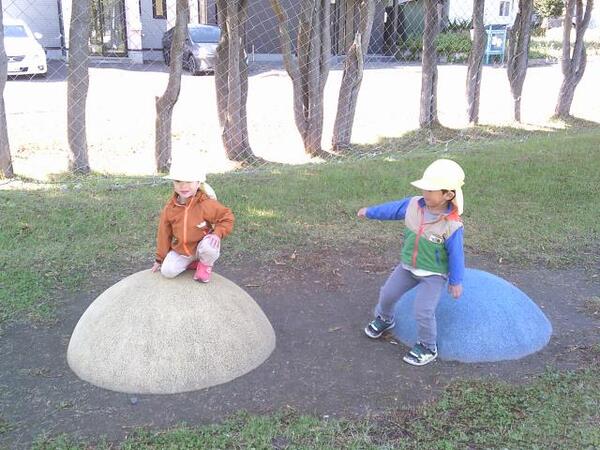 | 10月14日(火) 今日のわくわくタイムは、ちゅうりっぷさん・さくらさん・すみれさんで3つのグループに分かれて、お散歩へ行ってきました。 白樺公園グループでは、ブランコ・シーソー・グローブジャングル・滑り台・ジャングルジムの固定遊具で遊んだり、サッカーをして遊んでいます。 1つの遊びをじっくりと楽しんでいて、たくさんの笑顔がみられましたよ。 最後はみんなで、『こおり鬼』もしていますよ。 お友だちと歩いたり遊んだりして、戸外でのびのびと過ごしています。 |