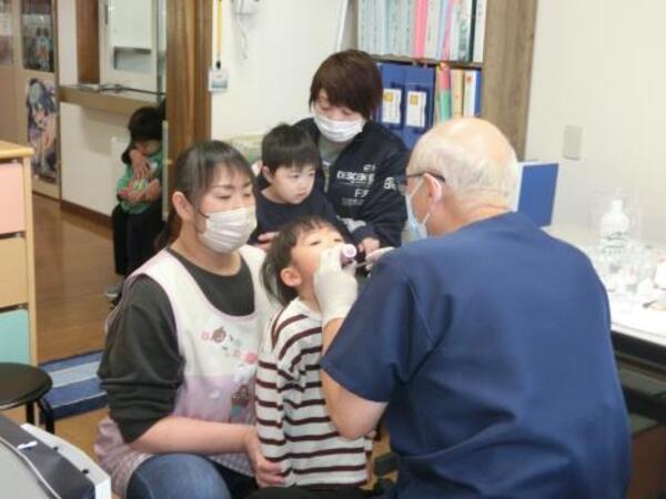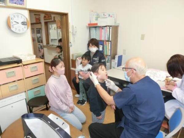緊張した表情のお友だちもいましたが、大きなお口を開けてみんな上手に検診を受けることができていましたよ。 |