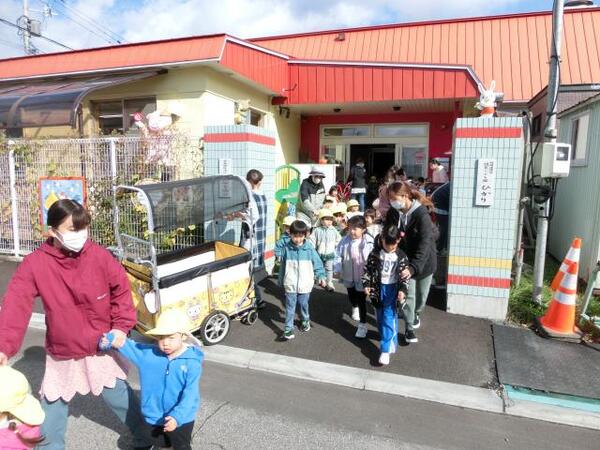 | 10月14日(火) わくわくタイム〜南仲町公園グループ〜は、2回目のお散歩ということで少し遠い道のりでしたが、大きいクラスのお友だちがリードして歩いています!! 公園では遊具で遊んだり、しゃぼん玉をしたり、お山からみんなで走ったりと楽しんできました。 帰り道は少し疲れた様子もありましたが、「楽しかったー!」といい笑顔でしたよ。 |