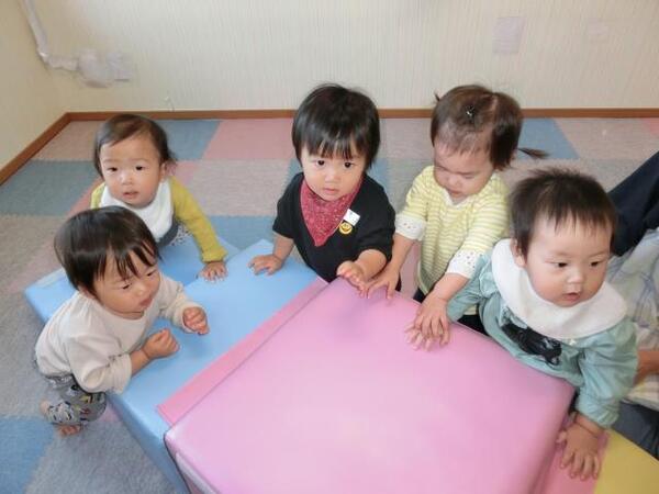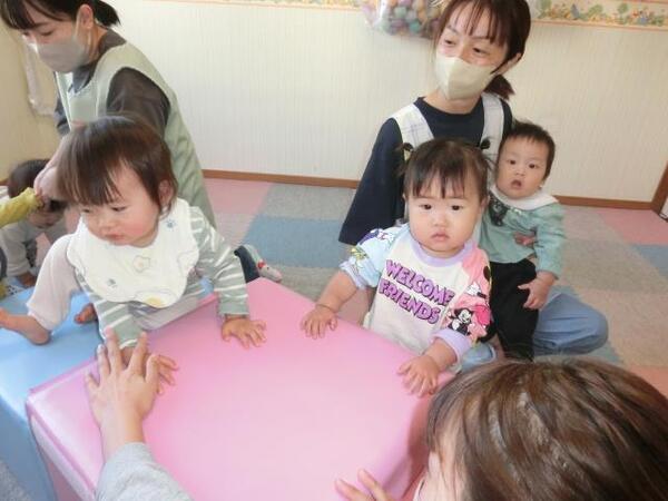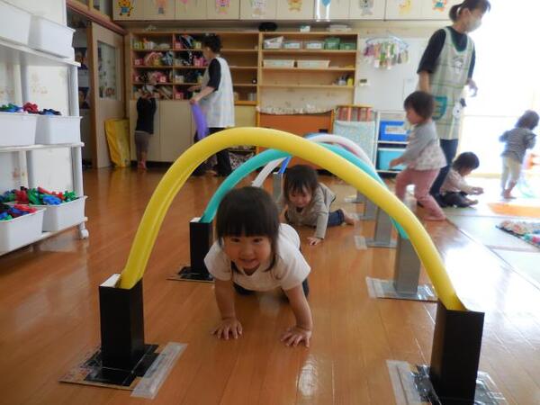 前回よりも積極的に自分で登ったり、はいはいでトンネルもくぐって楽しみ、お友達と笑い合う姿がたくさん見られましたよ!! |