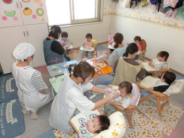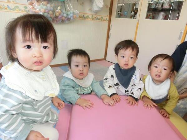 今日のひよこぐみの給食時に、調理師さんが食べている様子を見に来ました。