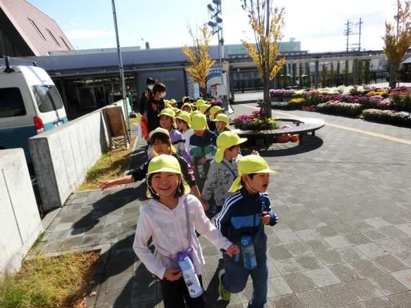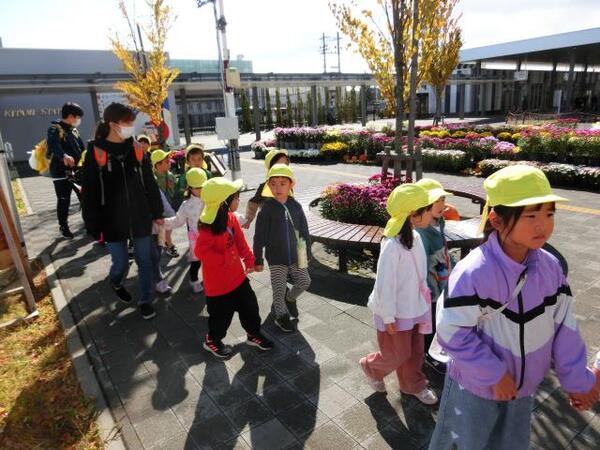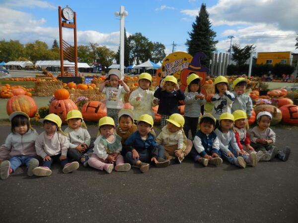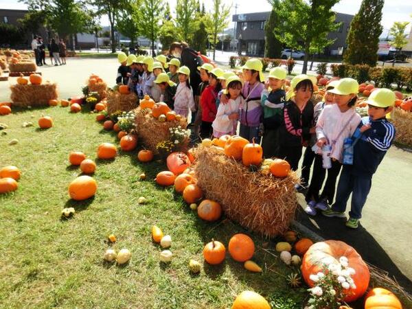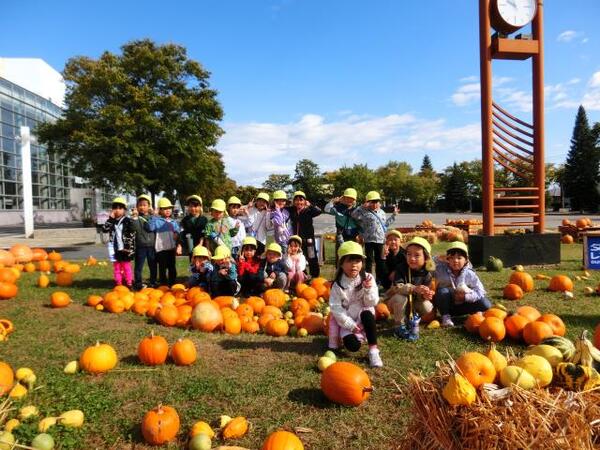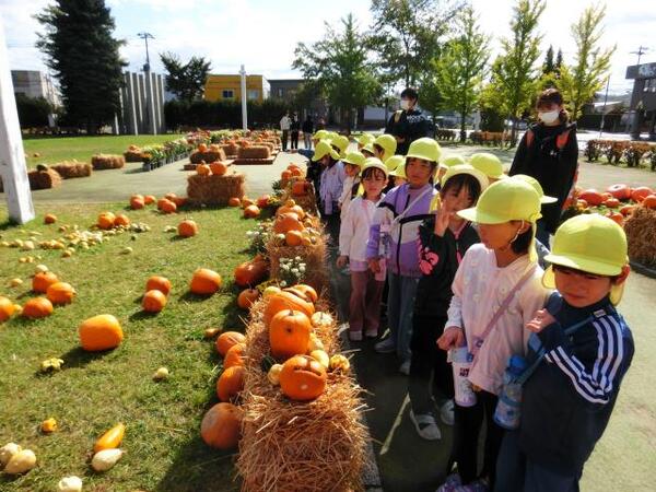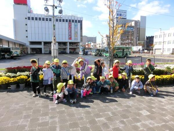 今日のすみれぐみは、芸文前広場〜北見駅までお散歩に行き、飾ってあるかぼちゃや菊の花を見てきました。