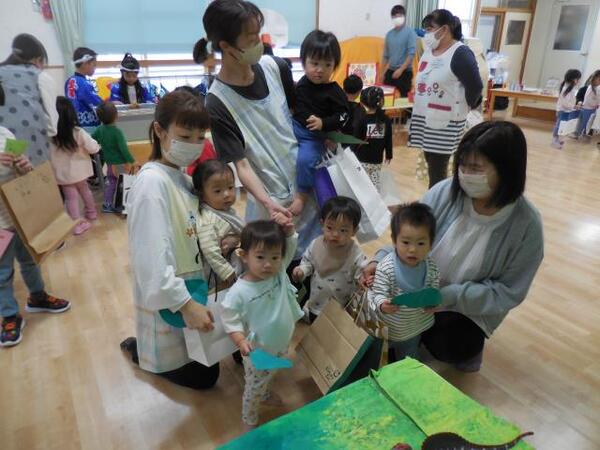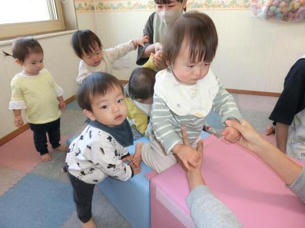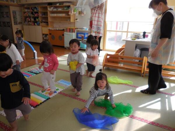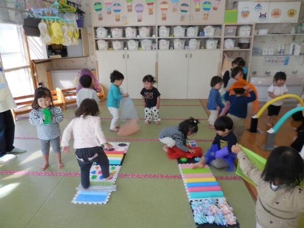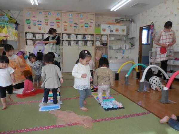 一人一人が歩いたり、はいはいやつかまり立ちをして伸々と体を動かし集中して楽しんでいました。