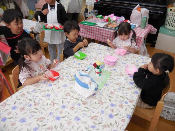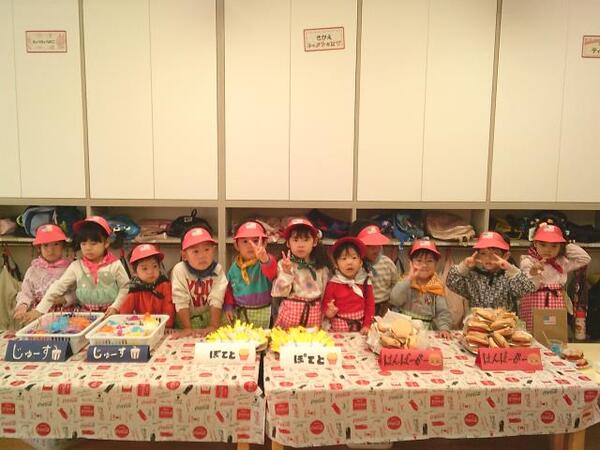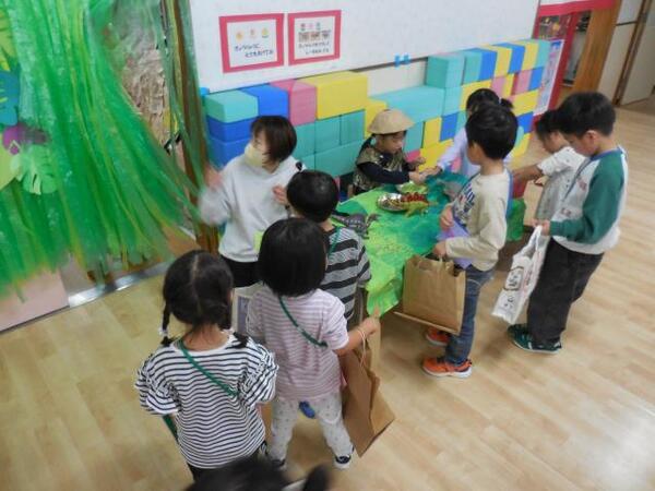 明日はお店屋さんとお客さんが入れ替わって、ごっこ遊びを開催します。お楽しみに♪ |