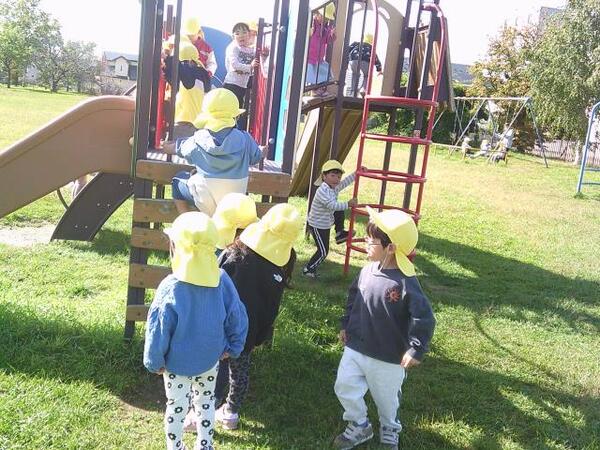 遊具で遊んだりお山で遊んだりと、たっぷり体を動かして楽しみました。