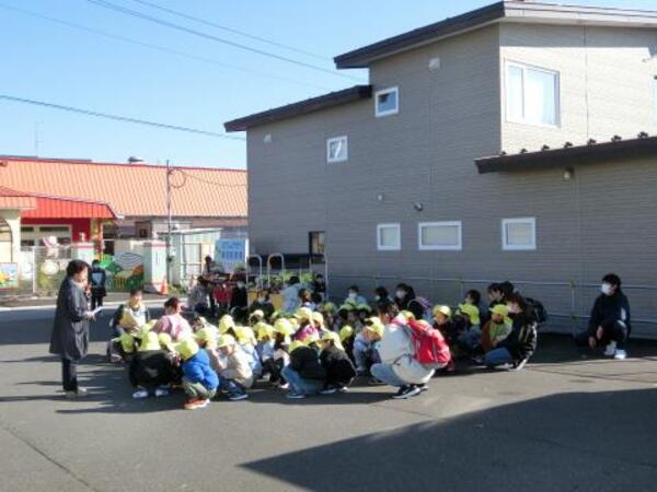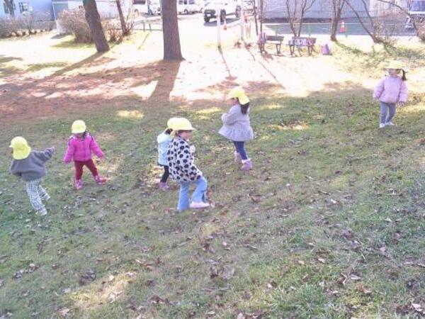 予告なしでベルが鳴ったため、ビックリしたお友だちもいましたが、先生のお話をよく聞いて上手に避難していた子ども達です。