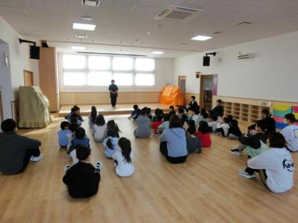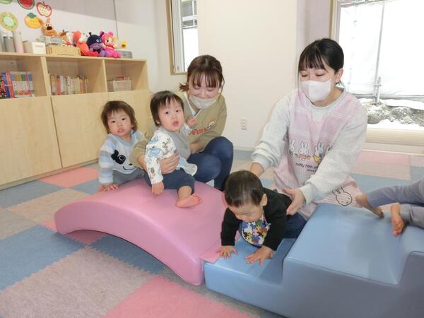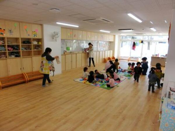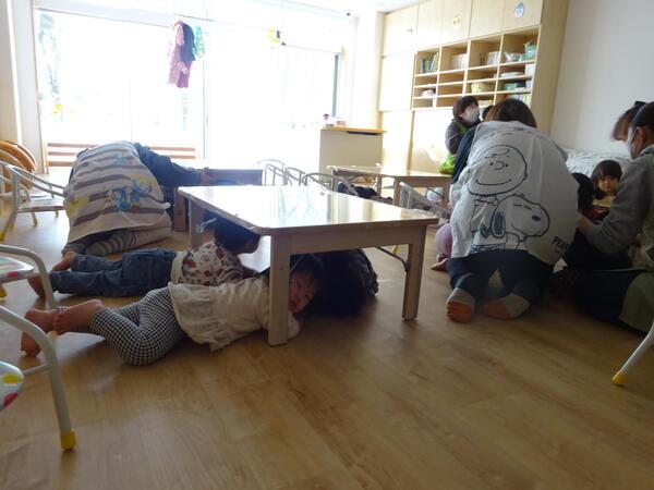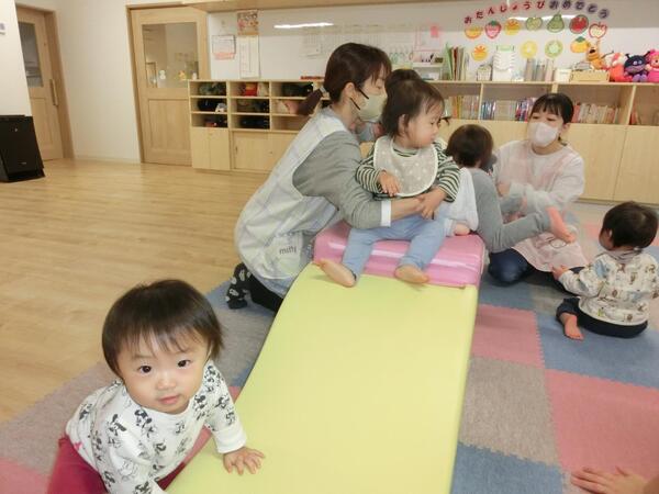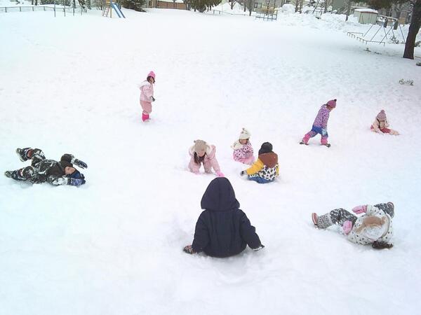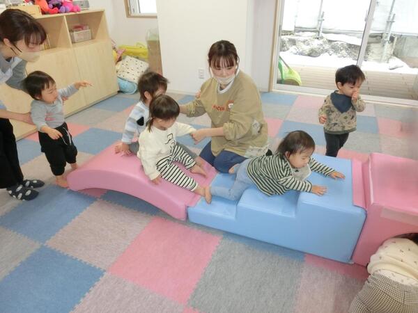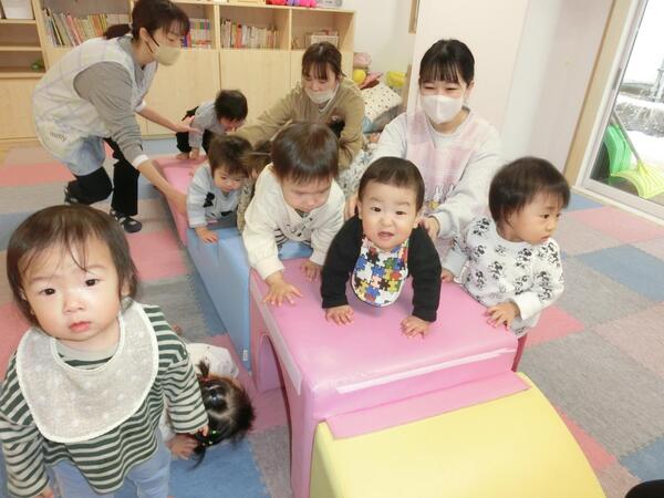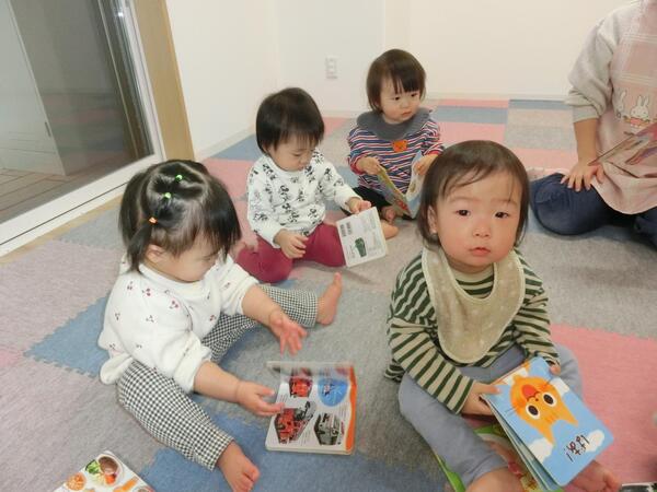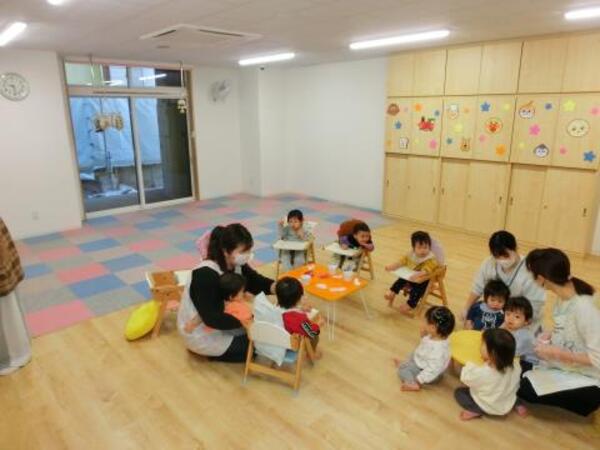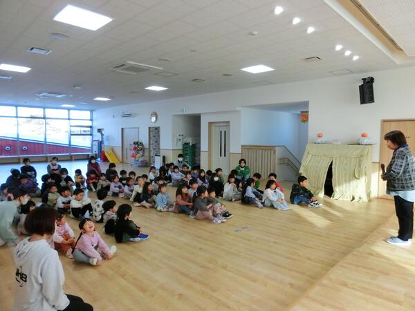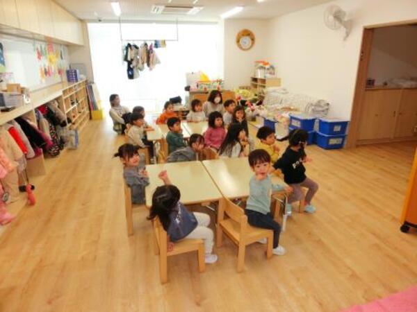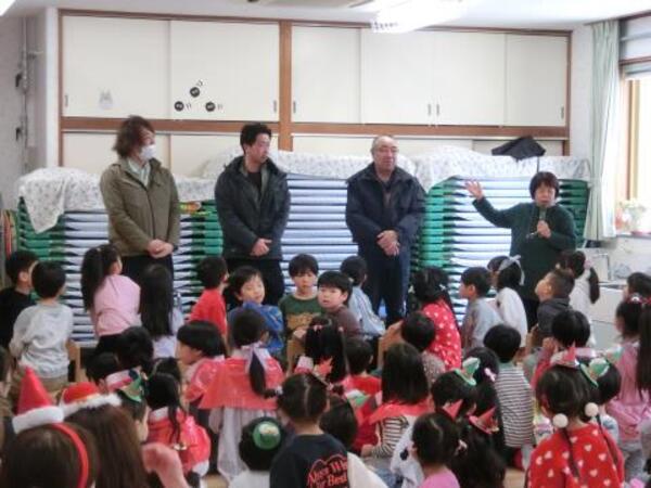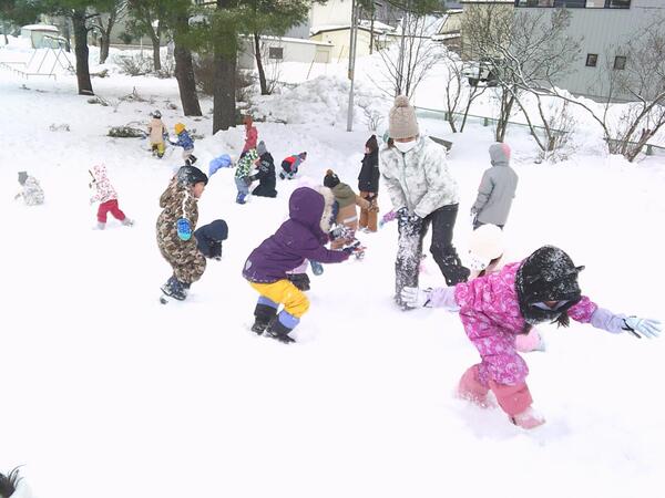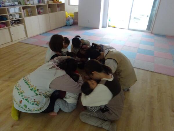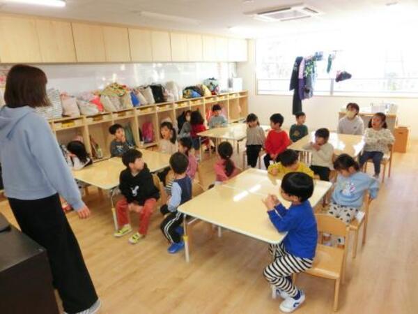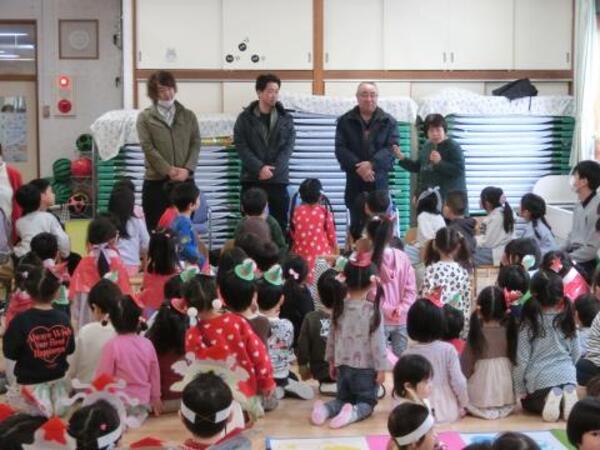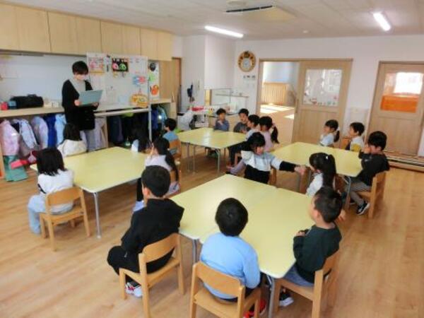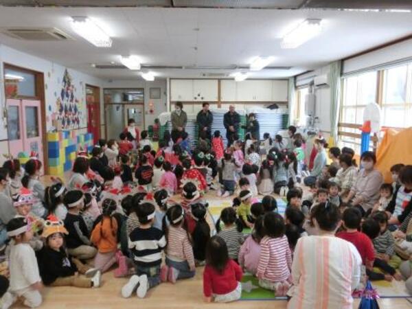 園長先生からのお話の後、『カルタ合わせゲーム』と『鏡餅リレー』の2つのゲームをして楽しんでいます。