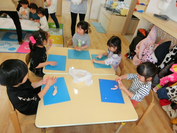 小麦粉粘土やスライムの感触を楽しんだり、手作り玩具で遊んだり、ボールプールやセンサリーマットやトンネルなどで体を動かしたりして、元気いっぱい遊んでいた子ども達です。