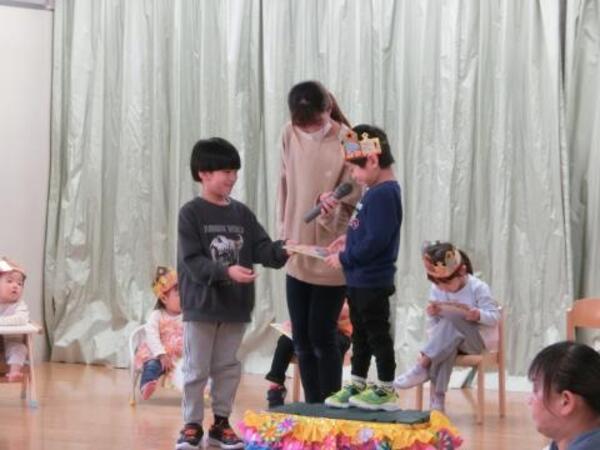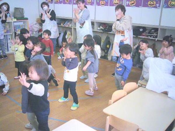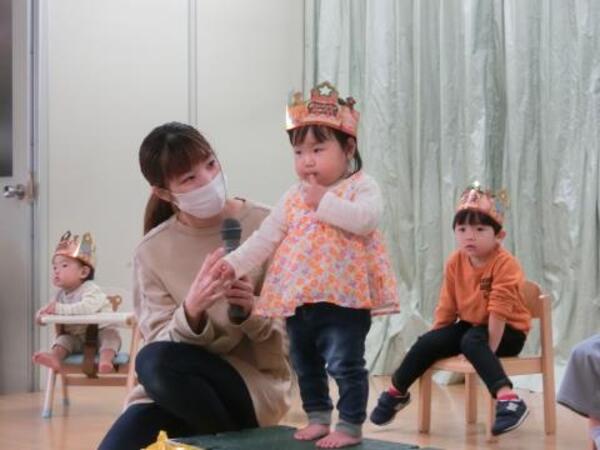 11月生まれのお友だちと、前月までにお休みしていたお友だちのお祝いをしています。