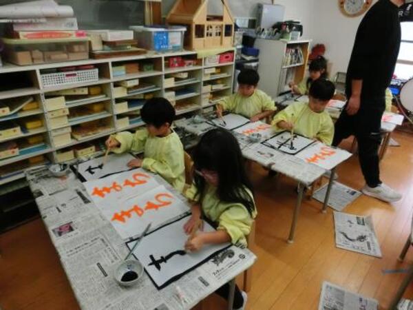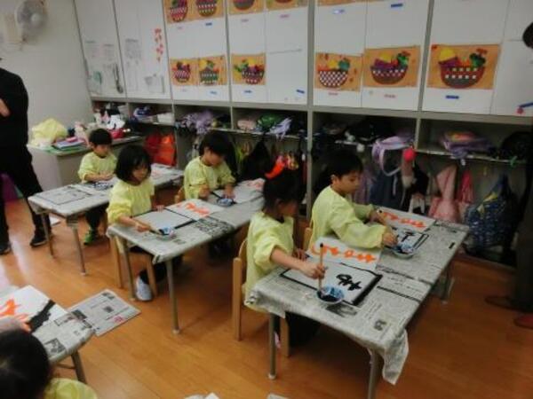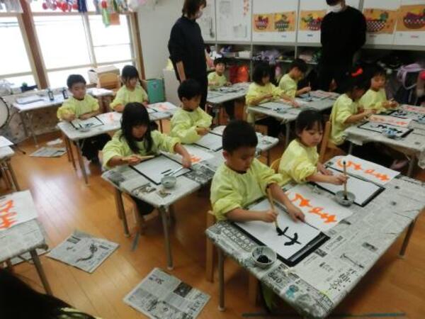今日のすみれぐみは、習字で『まち』という文字を書きました。