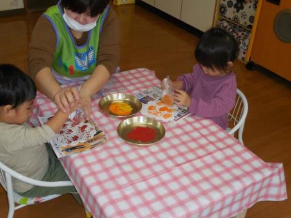 今日のつくしぐみは、ジップロックスタンプに挑戦。