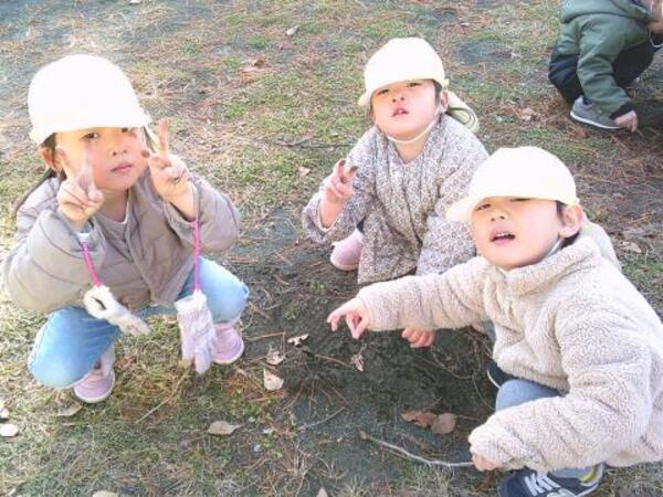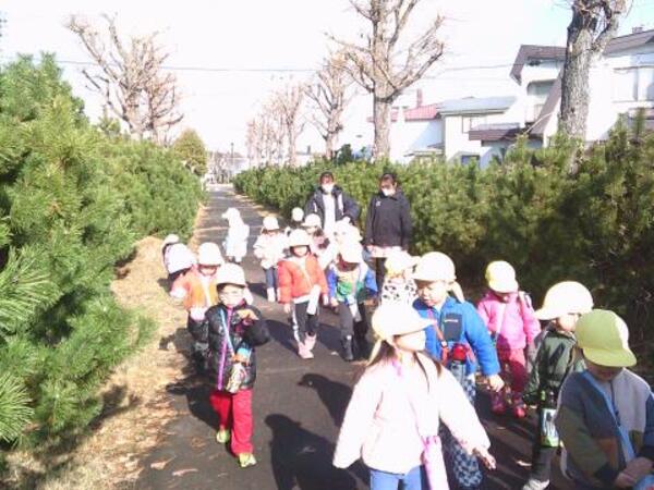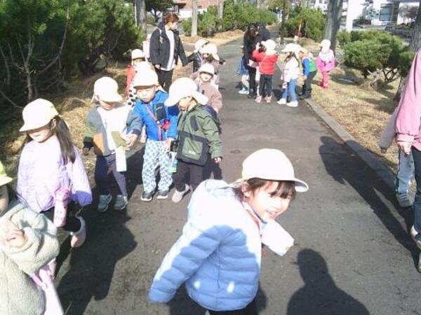 少し積もった雪を触ってみたり、落ちていた銀杏のにおいを嗅いでみたりと、自然にも沢山触れながら楽しく歩いてくることができました!! |