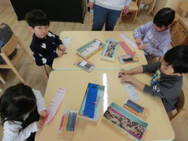 今回は折り紙に細く切り込みを入れたり、えんぴつを芯にしてくるくる巻いてくるっとあとを付けたりと、長く集中する工程がたくさんありました。