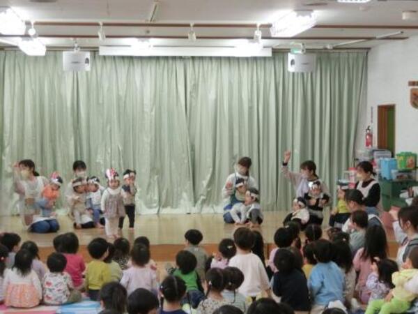 今日のたんぽぽぐみはおゆうぎ会に向けて、劇と遊戯の練習に取り組んでいます。