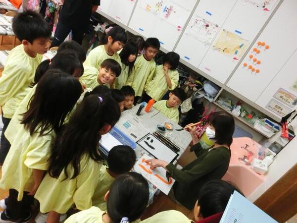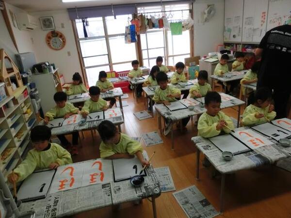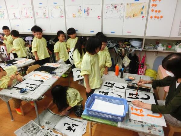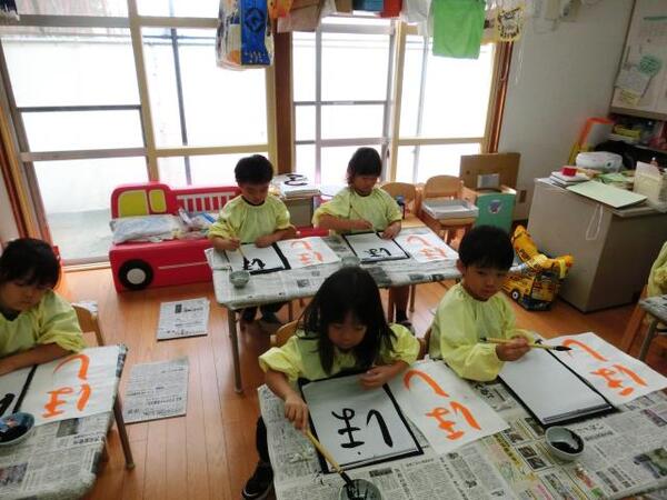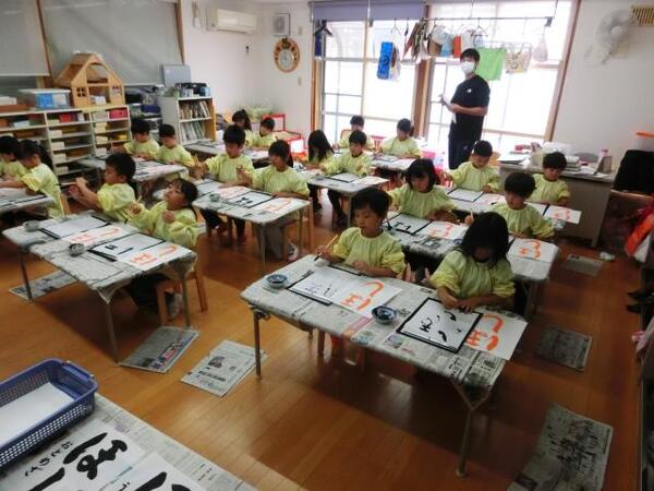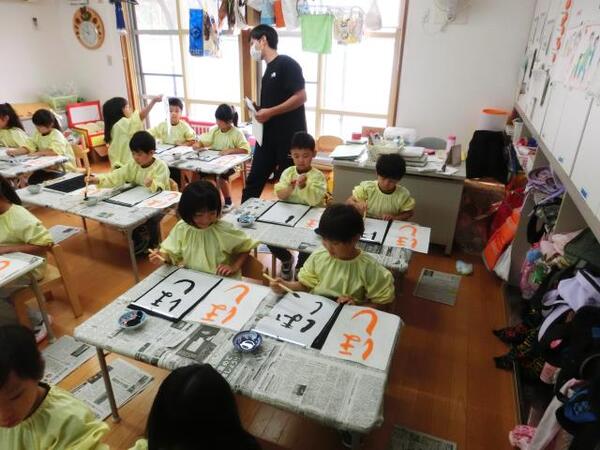 | 10月1日(水) 今日のすみれぐみは、習字の活動をしました。 『ほし』の文字を書きましたが、「ほ」の字が少し難しかったようです。 練習を重ねてとても丁寧に書けるようになってきており、花丸の数も増えて嬉しそうなすみれさんでした |