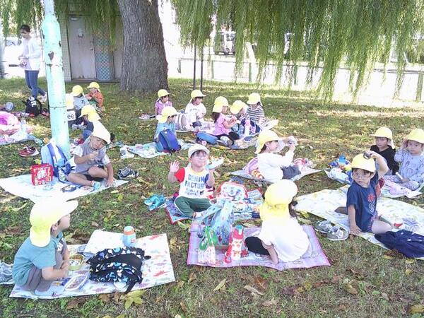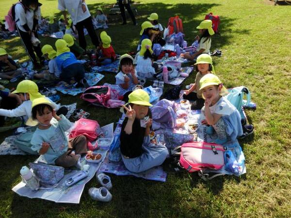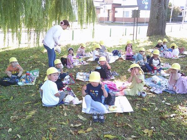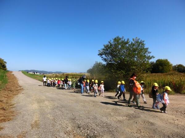 | 10月3日(金) 今日のさくらぐみ・すみれぐみは、園外保育で一緒に河川敷まで行って来ました。 仲良く手を繋いで、お話をしながら楽しそうに歩いていた子ども達。 河川敷についてからは、サッカーをしたり、みんなで鬼ごっこやジャンケンゲームもして楽しんでいます! そしてお弁当タイム! お父さんお母さんの作ってくれたお弁当を、嬉しそうに見せ合いながらモリモリと食べていましたよ。 お忙しい中、お弁当作りありがとうございました。 |