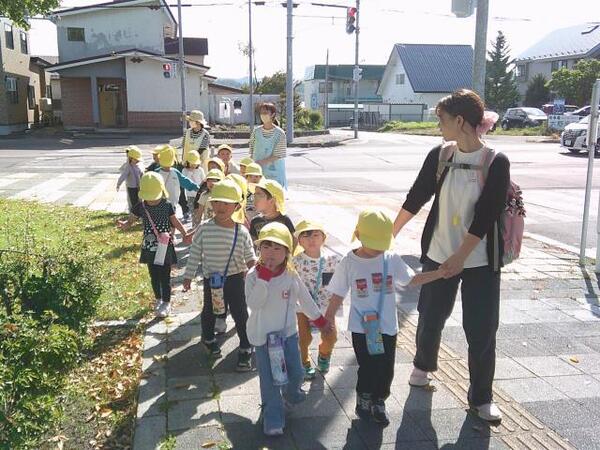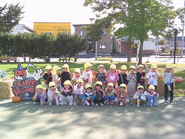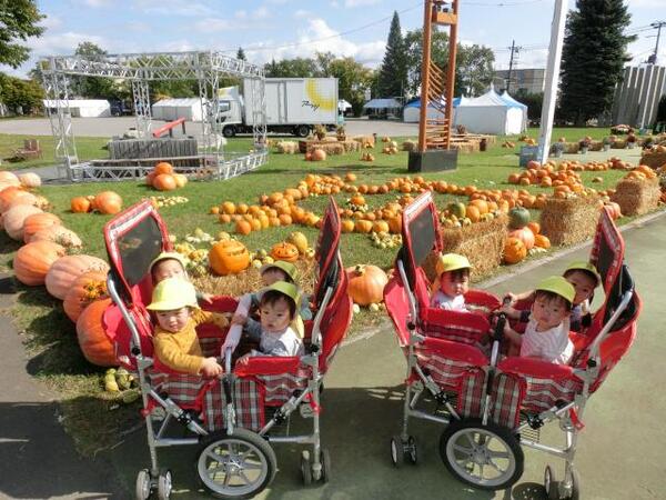 | 10月3日(金) 今日のたんぽぽぐみは、園外保育でいつもよりちょっぴり遠い、北見駅方面へ行ってきました。 芸文前広場の秋祭りの準備をしていて、ハロウィーンカボチャのオブジェを見たりして、楽しく過ごしてきましたよ。 お弁当もとっても喜んで食べていた子ども達です!! |