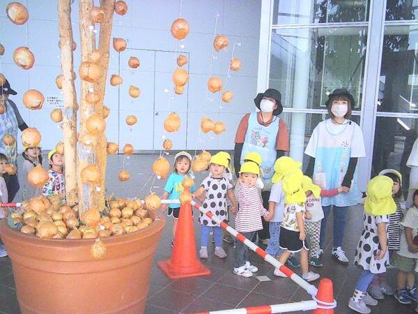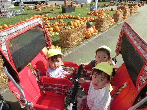| 10月2日(木) 今日のひよこぐみは、芸文前広場のハロウィンコーナーを見に行ってきました。 顔がついているカボチャやコウモリなど、可愛いカボチャがいっぱいありました。 子ども達も「あっ!」と指差しをして発見を楽しんでいましたよー! ベビーカーで周りましたが、カボチャをすぐ近くで見て、興味津々なひよこ組さんでしたよ。 カボチャで作られた猫のアートも可愛いかったです! |