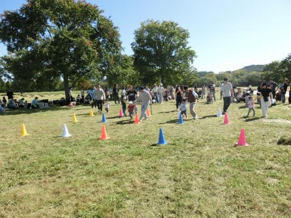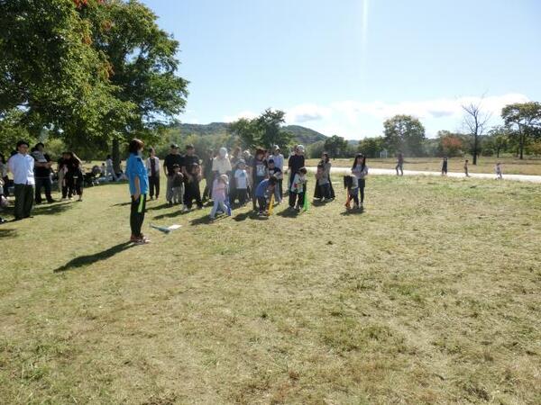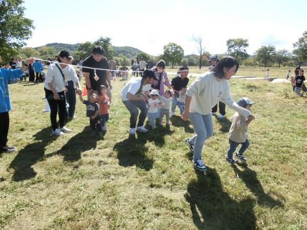 | 9月27日(土) お菓子取りゲームも白熱し、元気いっぱい走っていた子ども達。 大きいクラスのお友だちはグルグルバットをしてからの疾走でしたが、みんな目がまわる事無く走りきっていましたね。 お菓子をゲットした時の表情は笑顔全開でした。 そして待ちに待ったお弁当!! お父さんやお母さん、お友だちと一緒に食べたお弁当は美味しかったね♪ 楽しい思い出がまた増えたかと思います。 お忙しい中、ご参加くださりありがとうございました。 |