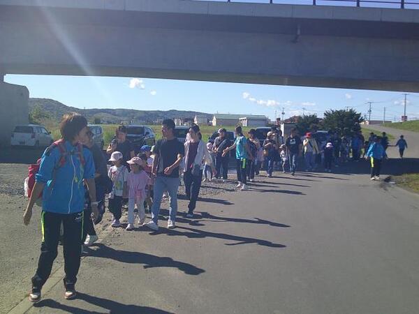 | 9月27日(土) 今日は子ども達が楽しみにしていた親子遠足の日でした。 昨日までの雨模様が嘘のように、とても気持ちの良い秋晴れでしたね。 なかよし公園から歩いて香りゃんせ公園へ目指したお友だちと、公園集合のお友だちとさまざまでしたが、みんな朝から元気いっぱい。 とても良い笑顔を見せてくれていました。 歩いていたお友だちはお父さんお母さん、先生やお友だちとの会話に花を咲かせていたようです。 公園では、ジャンケンゲームや〇×クイズをしたり、お菓子取り競走をしたりとみんなで楽しみました♪ |