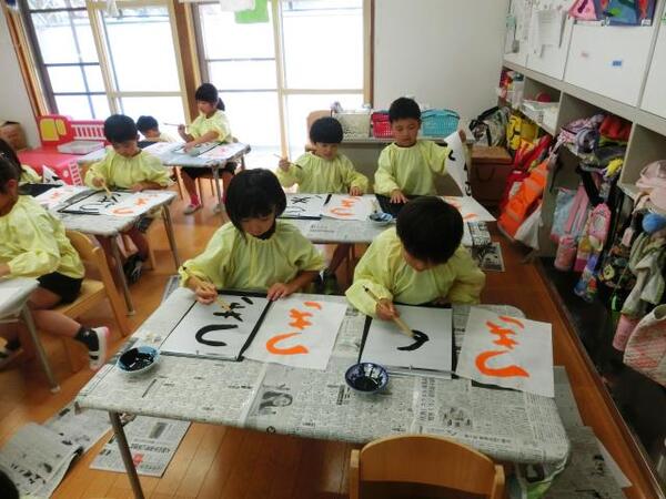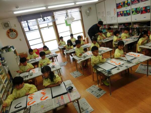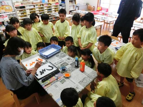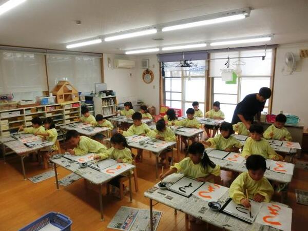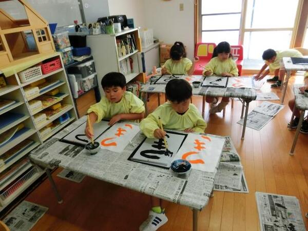 | 9月10日(水) 今日のすみれぐみは、習字で『つき』という文字を書きました。 先生のお手本を見ながら、集中して何枚も練習していた子ども達。 筆や墨の使い方も上手になり、ひらがなも丁寧に書けるようになってきましたよ! 「全部〇もらえたよ〜♡」と大喜びだったすみれさんです! 「次は何の文字を書くのかな〜?」と毎回楽しみに取り組んでくれています! |