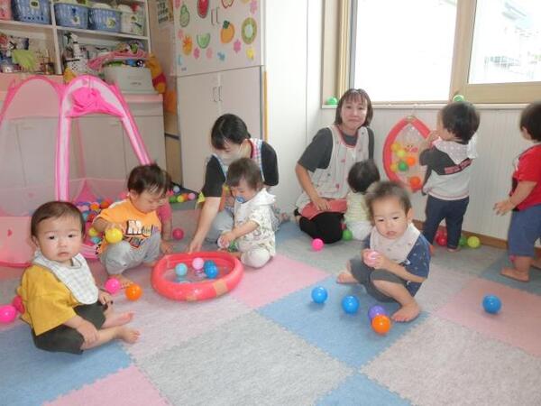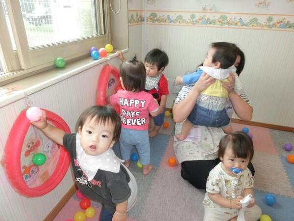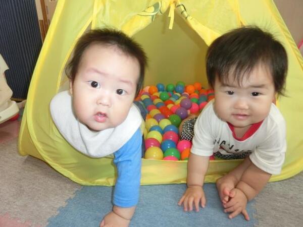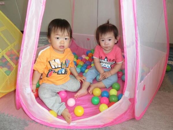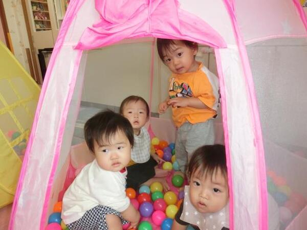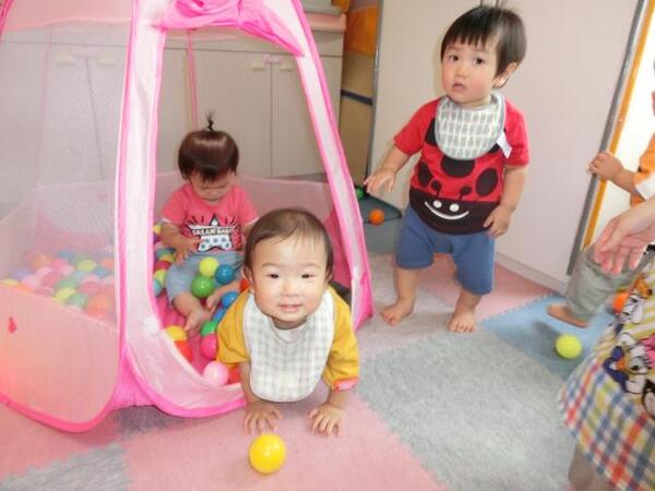 | 9月2日(火) 今日のひよこぐみは、お部屋でボールハウスやアンパンマン手作り玩具で遊んでいます。 それぞれ好きな場所へ移動してはボールを転がしたり、ボールハウスに入って”いないいないばぁ”と顔を出したり。 お友だちや先生との関わりを楽しむ姿がたくさん見られていました。 |