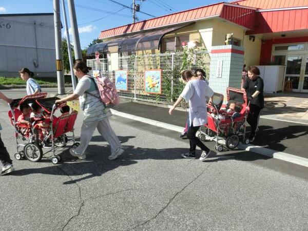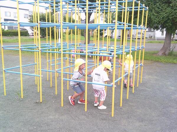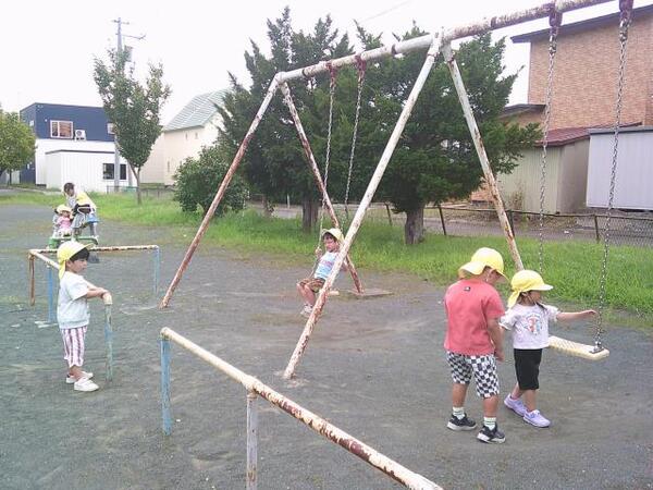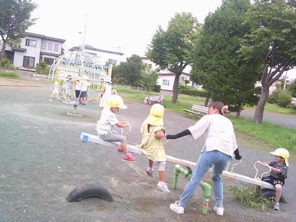 | 8月29日(金) 今日のちゅうりっぷぐみは、久しぶりに白樺公園までお散歩に行っています! 歩いている時から会話が弾み公園に着くと、様々な遊具を行ったり来たりしながら、思う存分楽しんできましたよ! 運動会の練習の成果もあり、真っ直ぐ歩くのも上手で体力も付き、早く到着できたので沢山遊ぶことができました。 気分転換にもなったので、あと一週間運動会に向けて頑張りたいと思います! |