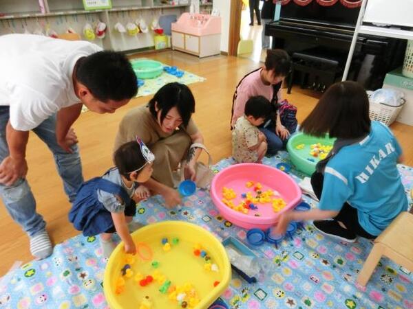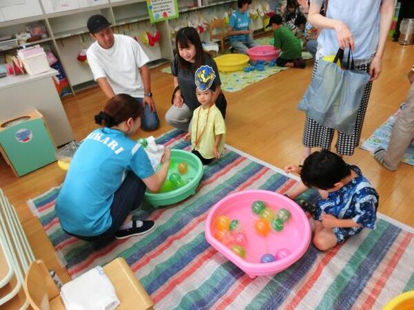 | 8月2日(土) あひるすくいやヨーヨー、おめんのコーナーにもニコニコで来ていた子ども達。 自分でチケットを渡して、嬉しそうにすくったり選んだりしていましたよ。 今年も大盛況のひかり縁日でしたね! お忙しい中ご参加ありがとうございました。 |
