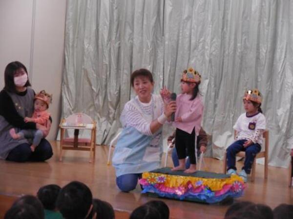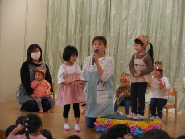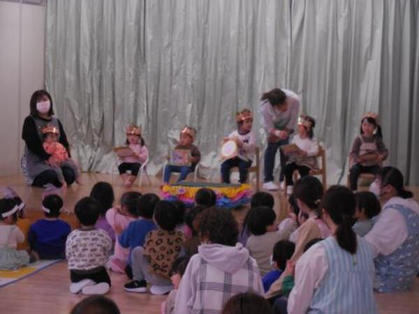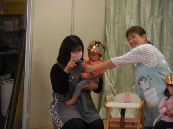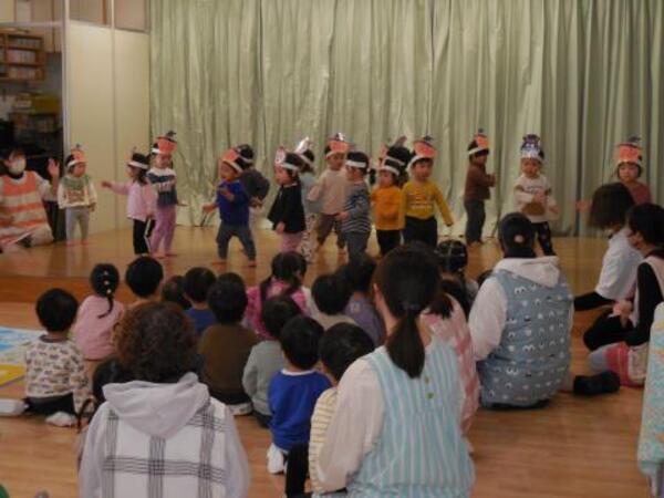 みんなでお祝いしたよ! 10月30日(木) 今日は10月生まれのお友だちのお誕生会を行いました。 緊張した表情のお友だちもいましたが、お誕生カードやお歌のプレゼントをもらい、にこにこの子ども達でしたよ。 今月の出し物はつくしぐみが担当! アンパンマンのお面をかぶって『サンサン体操』を元気いっぱい踊ってくれました。 大きいお友だちも一緒に歌ったり踊ったりして、大盛り上がりでしたよ。 10月生まれのお友だちお誕生日おめでとう♪ 2025/10/30