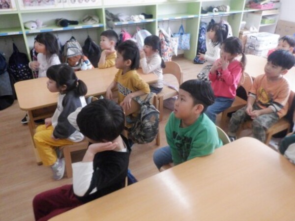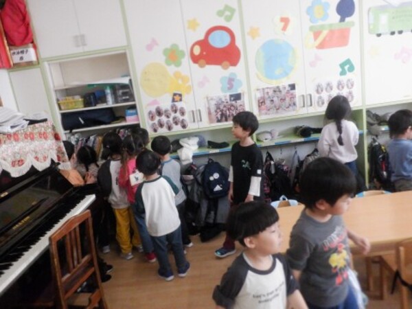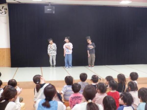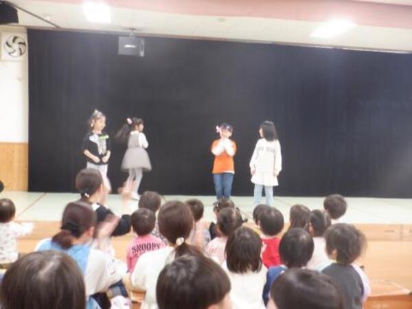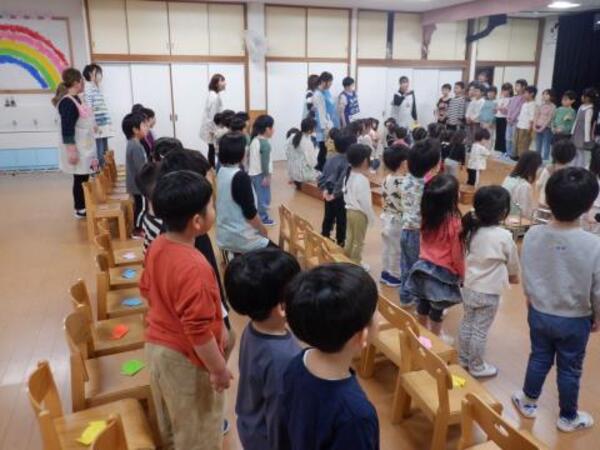 | 3月18日 水曜日 卒園式が近づいてきましたね。今日は、ゆりさんとのおわかれ会が行われました。 ゆりさんは、お友だちみんなに楽しんでもらおうと、 ミニライブを開催しました。 「好きすぎて滅!」、「ズートピア」、「倍倍FIGHT!」、 「パーフェクトヒューマン」をそれぞれ披露してくれましたよ。 みんな拍手喝采!盛り上がりました。 ゆりさんからみんなへ、折り紙で作ったプレゼントを渡して、 最後に、「虹」の歌をうたってくれましたよ。 楽しい思い出となった、おわかれ会でした。 |