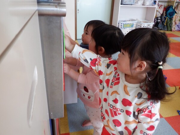 | 3月13日 金曜日 今日はゆりぐみ訪問 ゆりさんのお部屋を見学しました。 何があるのかな・・? どんなお部屋かな・・? 椅子やテーブルは大きいのかな・・? ワクワク ドキドキ♡のすみれさん ゆりさんのお部屋のおもちゃを見て 遊んでみたい!と大興奮のすみれさん ちょっと テーブル大きいね 椅子も違うね〜と ゆりとすみれの違いも発見してきましたよ その後は作品集の文字貼り 文字の向きや順番に気を付けながら 作業していました。 |