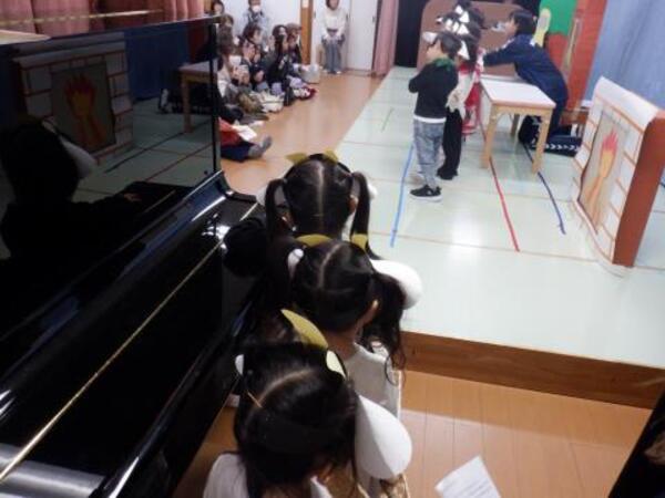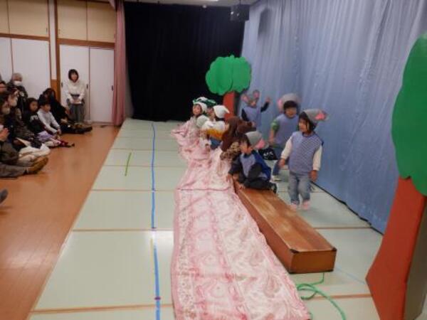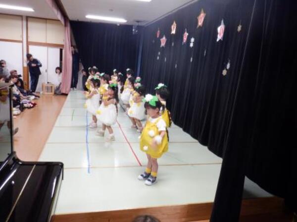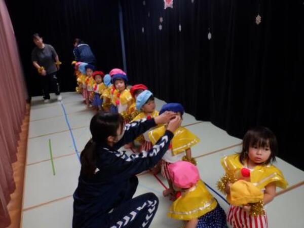 | 12月13日 土曜日 お遊戯会1部のたんぽぽさん、さくらさんの様子です。 おゆうぎ、げきと、幕があくまで、ちょっぴり緊張していたようですが がんばって、ステージに立ち、可愛い姿を披露することが 出来ました! |