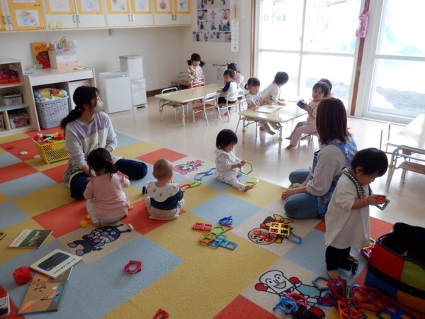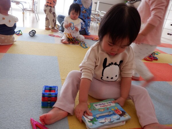 | 3月17日火曜日 ちゅうりっぷ組のお部屋訪問2回目! マグフォーマーやブロックで遊んだり、いつもより大きい椅子に座って絵本も読んでみたよ♪ お兄さんお姉さんな気分で、楽しく遊んだね😊 遊んだ後は、ちゅうりっぷさんの手洗い場で手を洗ってお部屋に戻ったももさんでした☆ |