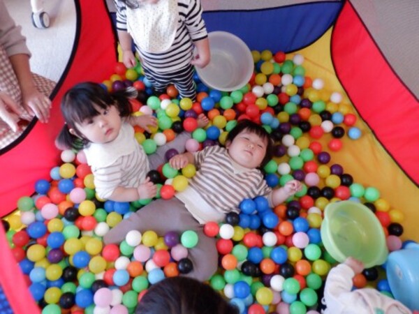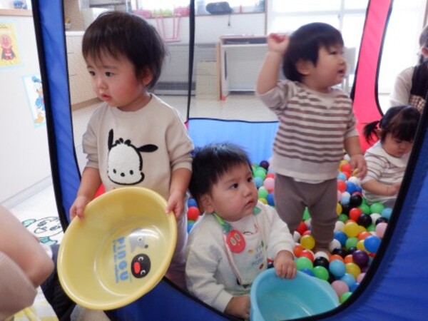 | 12月18日 木曜日 ももさん お部屋でボールプール遊び! ももさん 大好きな遊びだよ〜 ボール投げて!投げて! 見て見て落ちてくるよ〜 桶にボールを入れたり ポーンと飛ばしてみたよ プールの中で寝転んじゃった♡ たのしかったね |