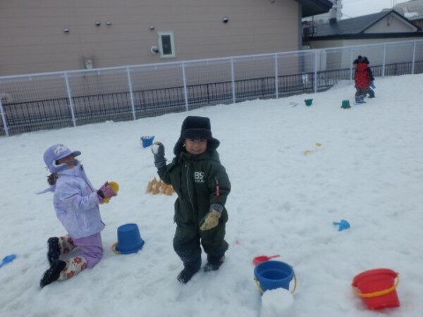 | 3月19日木曜日 今年度最後の雪あそび! 裏園庭で雪を掘ったり、雪山を作ったり、雪合戦やよーいドン!をしていっぱい遊びましたよ♪ 雪解けが進んで、雫がポタポタ落ちるのをお友達と並んで見る可愛らしいちゅうりっぷさんでした😊 |