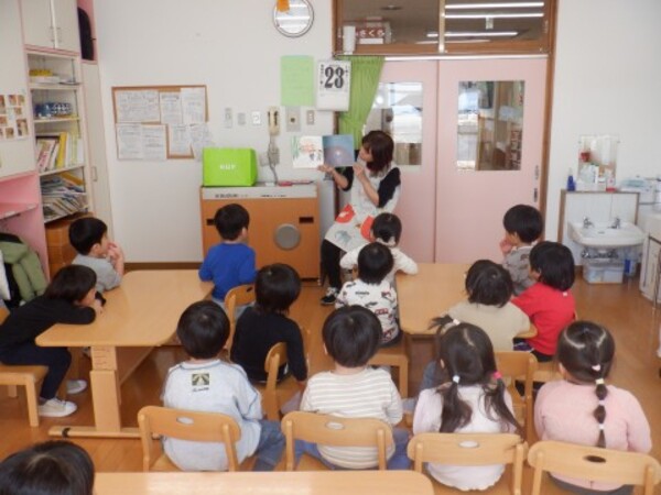 | 1月27日 火曜日 ちゅうりっぷさんと一緒に、お遊戯室にてあそびました。 ももさん、初リズム運動参加です。 ちゅうりっぷさんを見ながら、体を動かしています。 歩いたり、走ったりが上手になって、 豆まきごっこも、がんばりました。 楽しかったね。また一緒にあそぼうね。 |