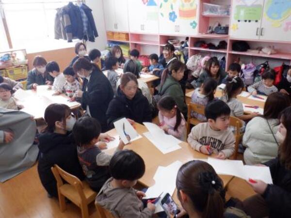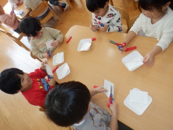 | 1月28日 水曜日 今日は、さくらさんが保育参観でした。 お母さんが来てくれるので、朝からちょっぴりどきどき。 うれしさもこみ上げるさくらさん。 製作で、ハサミを使っているところを見てもらいましたよ。 つくったもので、キャッチ風船や風船リレーを楽しみました。 おかあさんといっしょで、うれしい時間を過ごした さくらさんでした。 |