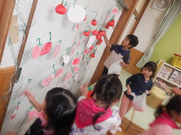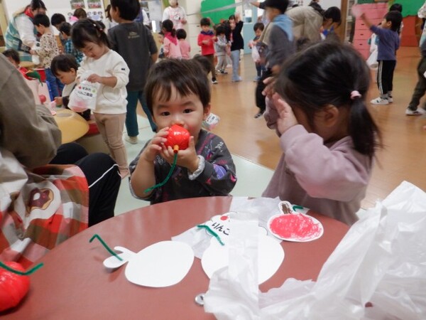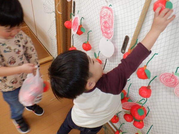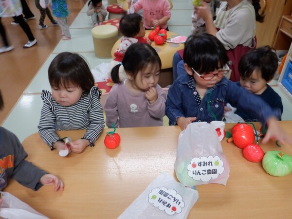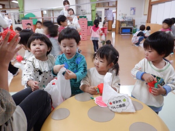 | 10月16日 木曜日 みんな〜!! すみれ農園が開店だよ〜!! たくさん リンゴがあるよ〜 受付で袋をもらって リンゴを収穫してね すみれさん 大忙しでした でも みんな喜んでくれてよかったね 今度は 梨とみかん狩り!?(子どもたちの要望) また がんばろうね♪ |