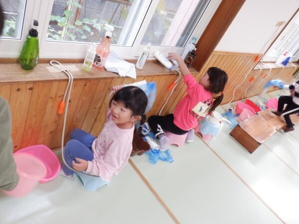 | 10月17日 金曜日 今日はごっこ遊びのシミュレーションパート1 「温泉ごっこ」の準備だよ〜 何するのかな・・? お仕事どうするのかな・・? なんだか ドキドキ♡するゥ〜 準備が終わったら みんなで遊ぶよ ごっこ遊び 楽しみだね |