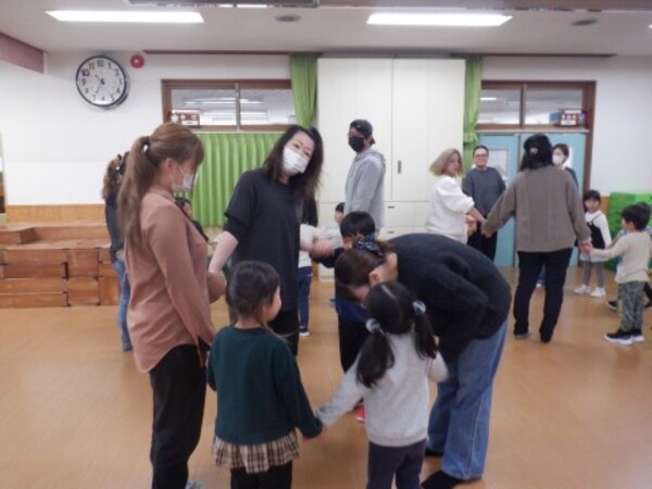 | 1月22日 木曜日 今日はすみれさんの保育参観の日 朝から ソワソワ ドキドキ♡の子どもたち 今、子どもたちが頑張っていることを 見てもらいました。 お父さん お母さんと一緒に ふれあい遊び♬も楽しみましたよ 「なべなべ底抜け」と「ゆらゆらボート」 全員で大きな円になって くぐるよ〜 できるかな? きゃあ〜!がんばって! 鉄棒とマットの個人発表も がんばりました! お父さん・お母さん ご参加 ありがとうございました。 |